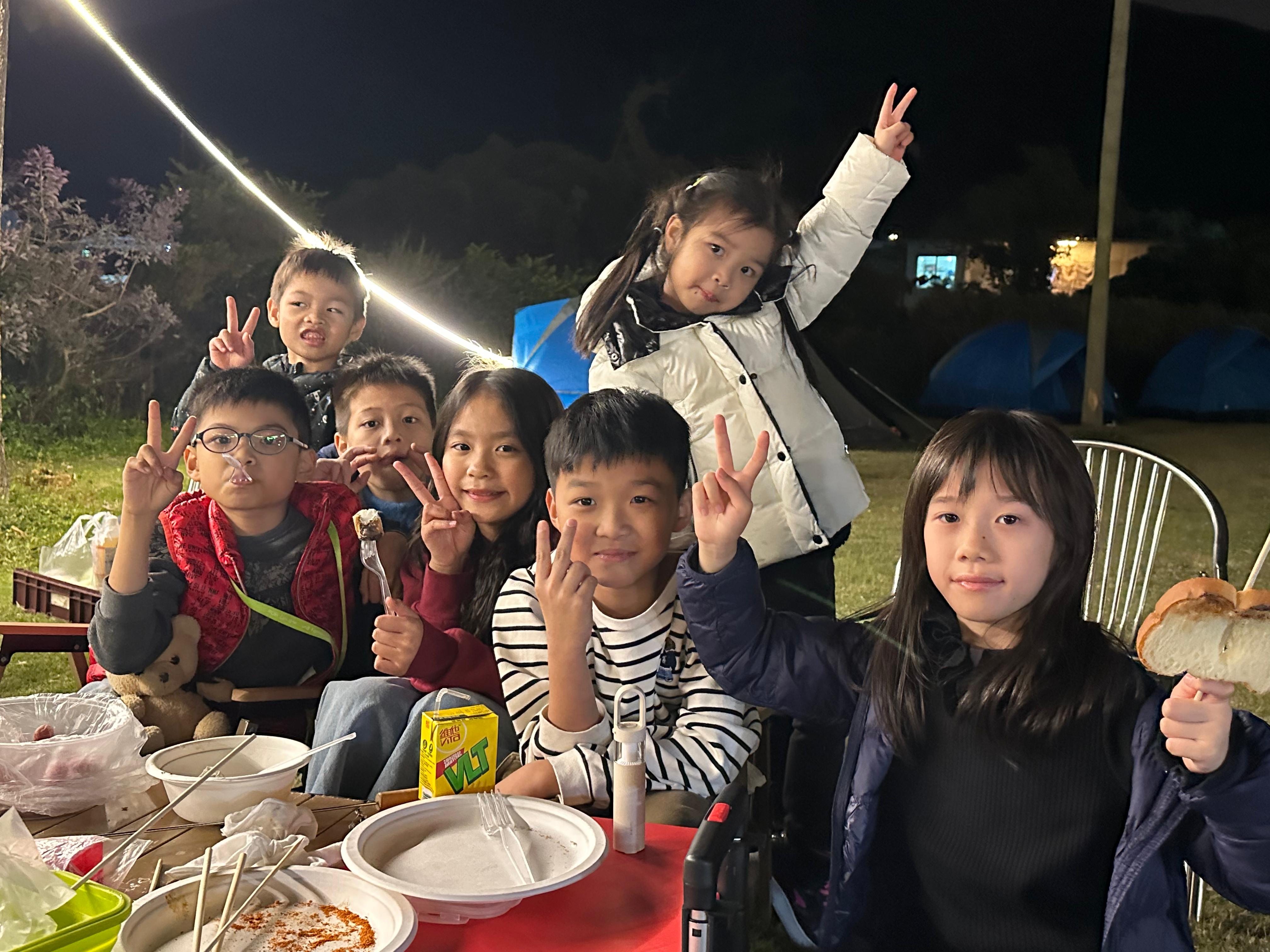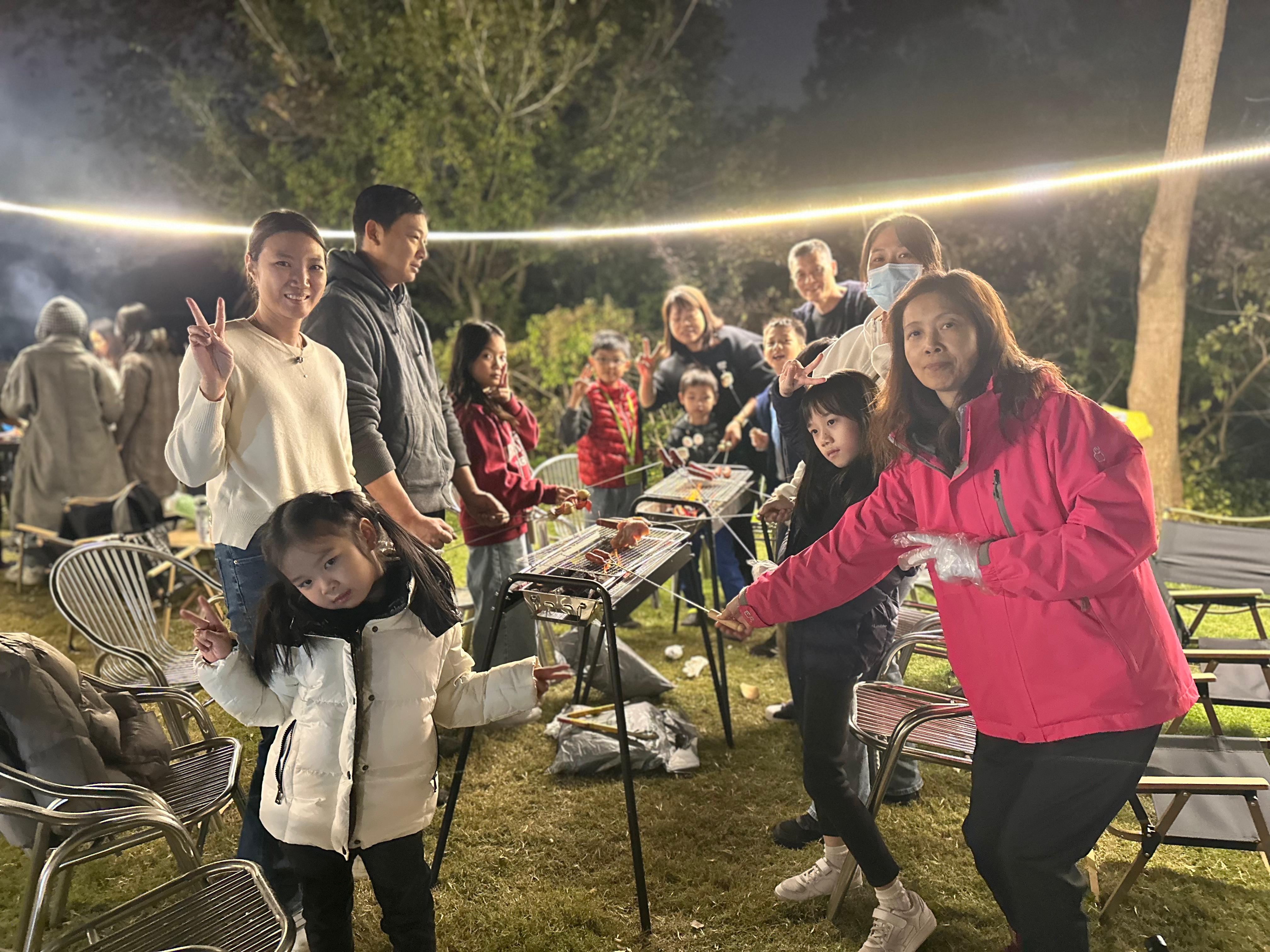 今年大會更特別加插生日會環節,為10月至12月生日的大小朋友送上蛋糕,大家一齊唱起生日歌,非常開心。傍晚時分,參加者圍聚營火旁,盡情享受燒烤之樂。隨後登場的「露營用品拍賣會」氣氛熱烈,參加者競投踴躍,將現場氣氛推向高潮。